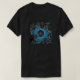 O t-shirt preto dos homens com grupo de zombis na parte dianteira.