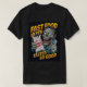 Um zumbi segurando um saco de drive-thru rotulado "Partes Humanas", com texto: "Comida Rápida Nunca Testou Tão Bem."