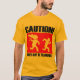 Cuidado engraçado do sinal! Os zombis talvez inflamáveis, homem Running perseguiram queimando zombis com faca
