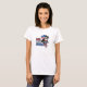 Nossa garota hula está toda vestida em sua garba patriótica de hula pronta para celebrar o 4 de julho e enviar sua mensagem de Aloha! Este gráfico querido enfeita essas camisetas senhoras na frente com um impressão de companheiro de flores de hibisco no verso.