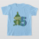 Se você ama sapos, vai adorar nossas camisetas de aniversário do 5 do Partido, roupas de cama, sacos de tote, botões de aniversário e mais o quinto aniversário especial! Possui um sapo verde vestindo um chapéu de partido pontilhado de polka verde e um grande número de striped azul 5!