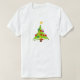 Camisas de Natal, canecas, cartões, autocolantes, sacos de tote, ímanes e outras roupas de Natal e presentes com uma árvore bonito decorada com luzes.