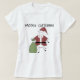 Uma vaca vestida de terno de Papai noel com um saco verde grande e texto que diz "Natal de Mooey" em t-shirts de férias, canecas, cartões, autocolantes, sacos de tote, mousepads e muito mais.