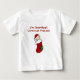 Os primeiros sacos de tota de Natal, T-shirts, e mais, para o rapaz ou rapariga do vovô, com um bebê a vestir um dentro de boné vermelho, um estoque de Natal e texto que diz "Sou o Presente de Natal do Vovô!".
