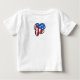 Nossa garota hula está toda vestida com seu traje hula patriótico pronta para celebrar o Quatro de Julho e enviar sua mensagem de Aloha! Este gráfico adorável adorna essas camisetas de bebês e crianças pequenas na frente com uma impressão companheira de flor de hibisco nas costas.
