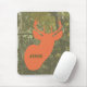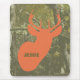 Um mousepad que caracteriza uma ilustração de um cervo alaranjado dirige sobre um fundo da camuflagem. Personalize com seu nome.