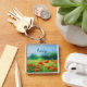 Um chaveiro alegre, o presente perfeito para um amante de flores. Uma paisagem colorida com um campo de papoilas vermelhas em uma aquarela vibrante. As corajosas cores vermelho, verde e azul evocam um dia quente de verão.
