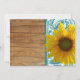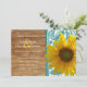 Convites de casamento rústicos e encantadores com imagens de madeira velha, rendas azuis e um girassol amarelo alegre. Excelente para um casamento de cowboy, campo, fazenda, quintal ou celeiro de verão. OBSERVE QUE TODOS OS ELEMENTOS SÃO EFEITOS IMPRESSOS — NÃO HÁ VERDADEIRA LAÇA, MADEIRA, ETC.