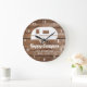 Um relógio de parede alegre, perfeito para o seu campista ou RV. Mostrada com um fundo de madeira rústico e design de camper branco de silhueta com a frase "Feliz Campers". Personalize seu nome de família para torná-lo de um tipo. Também disponível com cores de fundo sólidas, basta ver a nossa loja!