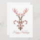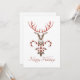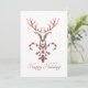 Design de Natal festivo apresenta cabeça de veado com galhadas vermelhas, canetas doces cruzadas e texto personalizável de "Feliz Feriado"