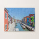 Uma bela fotografia de casas coloridas ao longo de um canal na ilha de Burano perto de Veneza, na Itália, impressa em um quebra-cabeça.