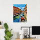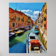 Como é viagem num canal em Veneza? Mostra os barcos coloridos e os edifícios desta linda cidade.