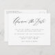Nossa! Vivemos tempos desafiadores! Não congele quando as coisas derem errado. É hora de mudar de direção! Você precisará de um espaço para se recompor, se adaptar e encontrar novas maneiras de remarcar e talvez até reinventar seu dia especial. Deixe-nos ajudá-lo! Esses cartões clássicos de adiamento de evento em preto e branco incluem uma mensagem de texto fixa em uma fonte de texto elegante com fonte serifada mínima para sua mensagem. Perfeito para qualquer ocasião que você precise adiar ou remarcar. Deixe seus convidados saberem que você precisa adiar o evento sem perder a compostura com esse design clássico atemporal. Não fique desapontado. Agora você tem tempo para tornar sua nova celebração ainda mais do jeito que sempre sonhou que fosse! Lembre-se: eventos imprevistos acontecem e seus convidados entenderão ;-) Se precisar de ajuda, entre em contato conosco pelo chat do Zazzle e ficaremos felizes em ajudá-lo! Tudo vai dar certo