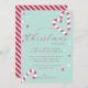 Convite de festas de natal não tradicional em verde pastel e cor-de-rosa com canas doces. Disponível em 2 cores.