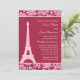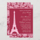 Um belo, floral, cor damasco acentua a Torre Eiffel neste convite cor doce. É apresentado no papel de base; no entanto, recomendo o peso e a textura do papel de linho. Esta é parte da coleção de cheios Candy Red em Paris. Se forem necessárias peças adicionais, avise-nos em prettyfancyinvites@gmail.com.
