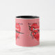 Caneca de café de publicidade profissional - Barber - HAMbyWhiteGlove - Este design tem um coração com um gráfico de tesoura. O plano de fundo e o texto deste podem ser de qualquer cor. Apenas escolha personalizar dentro da opção personalizar. Mostrada com fundo rosa em uma xícara branca e preta, com um coração vermelho brilhante, tesoura preta e letra branca e cinza. Mostrado com cabeleireiro.