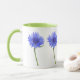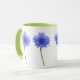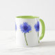 caneca de prenas com flores azuis contra fundo branco - comprar conjunto de uma flor selvagem ou escolhido de uma variedade de mugóis de flores silvestres, todos com alças verdes frescas