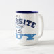 Mug, branco com interior azul e o logotipo de Cara do site na parte externa