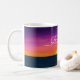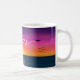 Um avião escreve uma mensagem pacífica através de um nascer do sol brilhante.