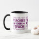 Uma caneca incrível com a citação "Professores vão ensinar" cercada por material escolar