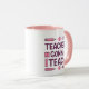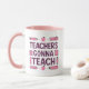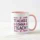 Uma caneca incrível com a citação "Professores vão ensinar" cercada por material escolar