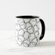 Esta caneca apresenta um padrão dinâmico de círculos pretos sobrepostos, criando um efeito intrincado e mesmerizante de arte em linha. Cada círculo varia sutilmente na espessura, adicionando profundidade e uma sensação orgânica desenhada à mão. O esquema de cores preto-e-branco minimalista torna-o versátil, enquanto os círculos de encravamento evocam uma sensação de unidade e fluxo. Ideal para a decoração ou moda moderna e inspirada no abstrato, este arranjo limpo e rítmico deste padrão lhe dá uma estética ousada mas sofisticada.