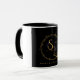 Uma caneca de café com um padrão preto e branco fofo com logo de raio de luz