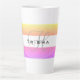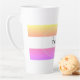 Caneca de café listrada amarela, rosa e branca com o seu nome em preto e inicial na cinza. Design HAMbyWhiteGlove aka HAMbWG