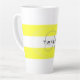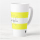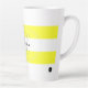 Caneca de café listrada amarela e branca com o seu nome em preto e inicial na cinza. Design HAMbyWhiteGlove aka HAMbWG