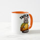 Uma cena química onde um gato está segurando um taco em uma pata e uma bebida na outra, mostrando um momento lúdico do gato aproveitando uma refeição. Ele é um amante do taco