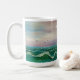 Uma pintura serena do mar captura o movimento rítmico das ondas, rolando suavemente, mas poderosamente, sob um vasto céu. Ondas de ponta branca crescem ao longo da profundidade da água azul, cada uma refletindo um toque de luz solar. No primeiro plano, as gaivotas deslizam graciosamente sobre a água, suas asas se espalharam, lançando sombras delicadas nas ondas abaixo. O horizonte se estende infinitamente, misturando tons suaves de céu e mar, criando um sentimento de abertura e liberdade. A cena é pacífica, mas viva com o som das ondas e as chamadas distantes das aves marinhas.