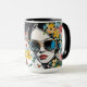 Adicione um toque de estilo vibrante à sua rotina matinal com esta caneca apanhadora de olhos! Apresentando o rosto de uma mulher de pop, vestindo óculos de sol de aviador adornados com flores silvestres e borboletas monarcas, esta caneca combina arte ousada com um tema de natureza caprichosa. Perfeito para adicionar um breque de cor e personalidade ao seu café ou ao seu tempo de chá.