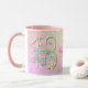 Um incrível arco-íris de cores, flores cor-de-rosa e borboletas lavandas preenche esta 18ª caneca de Feliz Aniversário com celebração. O nome da garota de aniversário, cor-de-rosa, pode ser personalizado em modelo. Você também pode gostar dos presentes e cartões correspondentes disponíveis na seção de Aniversário da minha loja de estúdio no Zazzle. ©AnuraDesignStudio Todos os Direitos Reservados