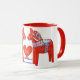 Os cavalos gêmeos do dala do feriado no estilo escandinavo tradicional da arte popular com coração e costume datam. Mostrado aqui para o 25o aniversário de casamento, esta café ou caneca do chá podem ser personalizados com seus próprios ocasião especial e ano. Deus julho da suecia! Presentes escandinavos.