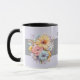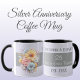 Caneca 25 prata aniversário flores nomes roxos