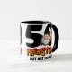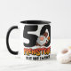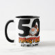 50th design engraçado do aniversário com o homem das cavernas de sorriso dos desenhos animados que guardara um clube e uma tocha. O texto diz 50 PRÉ-HISTÓRICOS MAS NAO EXTINTOS. Fundo afligido. Personalize-o com seu próprio texto feito sob encomenda. Original de PinkInkArt!