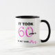 Se alguém que vocês conhecem está celebrando um aniversário de 60 anos, este presente de 60 anos para ela é uma caneca divertida que diz "Levou 60 anos para conseguir esta caneca." As letras preto e rosa são usadas para fazer disto uma caneca apenas para mulheres. Os presentes de 60 anos devem ser únicos e esta caneca é mesmo. É um maravilhoso presente de 60 anos para a garota com senso de humor. Palavras e Design protegidas pelo Copyright Kathy Henis 9-25-13