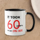 Este marco de 60 anos dá ideia se para homens e é para ser um pouco engraçado. A caneca tem um interior preto que combina com as palavras pretas na caneca. As palavras-chave casal na caneca também estão em vermelho. A caneca diz "Levou 60 anos para conseguir esta caneca." A caneca de tipografia é um presente único para um aniversário de 60 anos, assumindo que ele tenha um bom senso de humor, é claro. Palavras e Design protegidas pelo Copyright Kathy Henis 9-26-13