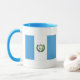A bandeira de Guatemala caracteriza duas cores: azul-céu e branco. As duas listras de azul-céu representam o fato de que Guatemala é uma terra situada entre dois oceanos, o Oceano Pacífico e o Oceano Atlântico (mar das caraíbas); e o céu sobre o país (veja o hino nacional de Guatemala). A cor branca significa a paz e a pureza. No centro da bandeira é a brasão guatemalteca. Inclui o quetzal Resplendent, o pássaro nacional de Guatemala que simboliza a liberdade; um rolo do pergaminho que carrega a data da independência de América Central da espanha, o 15 de setembro de 1821; rifles cruzados, indicando a vontade de Guatemala de defender-se se necessário pela força; uma coroa do louro de baía, o símbolo para a vitória; e espadas cruzadas, representando a honra. A bandeira da América Central foi usada em Guatemala até 1851, quando um factor pro-Espanhol tomou sobre e adicionou as cores espanholas de vermelho e de amarelo à bandeira. As cores originais foram restauradas o 17 de agosto de 1871, mas como (preferencialmente do que horizontal) listras verticais e com uma brasão nova. O quetzal Resplendent apareceu previamente nos 1830s na bandeira de altos do Los, o sexto estado na república federal.