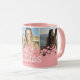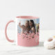 Uma bela caneca de amizade com uma colagem fotográfica de você e sua bestie, um design cor-de-rosa, o ditado "o melhor dos amigos", e seus nomes.