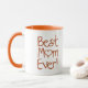 Melhores canecas escritas à mão bonitas da mamã nunca. Alaranjado e branco com coração.
