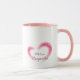 Uma caneca floral de aquarela com a inspiradora citação "Mãe Vida Melhor". Adicione seu nome ou o nome de sua mãe favorita para criar um presente personalizado e pensativo. Belamente desenhada com sotaques de rosa, lavanda e ouro, esta caneca personalizada faz um presente perfeito para o Dia das Mães, aniversários, ou qualquer dia que você queira celebrar a mãe.