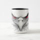 A mug with a picture of a bird with red eyes. It looks very unusual. A great gift.