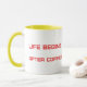 Comece seu dia com nossa caneca "A vida começa depois do café"! Projetada para amantes do café, esta caneca de na moda é o lembrete perfeito de que uma xícara de café fresca pode começar seu dia. Esteja você em casa ou no escritório, desfrute da sua cerveja favorita nesta caneca durável e elegante. Ideal para entusiastas de café e faz um presente de excelente para amigos, familiares ou colegas. Máquinas de lavar louça e micro-ondas seguras, esta caneca combina funcionalidade com uma mensagem divertida e motivacional. Pegue a sua agora e eleve a sua experiência em café!