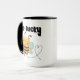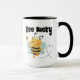 "Abelha sortuda" grande caneca de dois tons com design de Cute de uma abelha feliz voando com um traço em forma de coração e uma "varinha mágica". Uma grande caneca do dia a dia lembrando-vos da primeira busca pela felicidade e sorte.