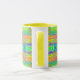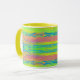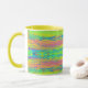 Caneca de café com fundo brilhante abstraído, linhas horizontais coloridas