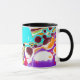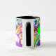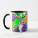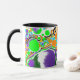Uma caneca de café digital azul, verde limão, púrpura, cor de laranja e fluida, abstrato.
