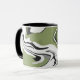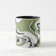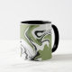 Este design consiste de um padrão abstrato com ondas e formas curvas em cores que variam de preto, branco, cinzas e verde. A composição dá a impressão de movimento e fluidez, parecendo padrões naturais como ondas, fumaça ou elementos da natureza.