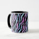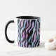 Na moda, caneca elegante com padrão de impressão abstrato com zebra em cores pretas, azuis, violetas e cor-de-rosa, feita da minha pintura acrílica original.