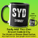 SYD - Sydney - Adicione o código e o nome da cidade para sua casa ou para seu destino do sonho! - (Apenas pesquise no google 'códigos de aeroporto' se não tiver certeza do código que deseja) Você pode adicionar o país sob o nome da cidade também!